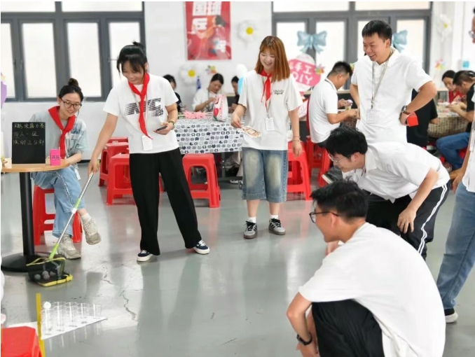在“童心映好博 成长不停步”主题场,空间被转化为一座记忆博物馆。甩元宝、弹弓射击、漆扇制作等复古游戏与童年零食,铺陈出一条沉浸式时光隧道。在这里,全员褪去职场身份,以孩童视角重新审视初心:通过沙包大作战复盘项目协作,用弹珠轨迹演绎决策逻辑,让职场智慧在嬉戏间自然生长。